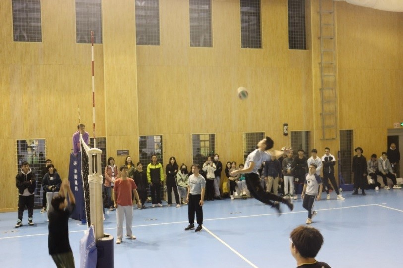 在男子组对决赛中,公司与体育学院角逐最终的冠亚军。本场比赛吸引了众多同学前来观看,现场气氛十分火爆。赛前,双方队员都抓紧时间热身,士气十分高涨。随着裁判员的一声哨响,双方进入了紧张而又激烈的角逐中。本次比赛采用“五局三胜制”,比赛正式开始后,公司以大比分的优势拿下首胜。第二局,公司的队员们略有疏忽,失掉一局。第三局,公司队员们逐渐找回状态,扳回一局拿到赛点。第四局,公司进攻十分猛烈,率先拿下前三球。然而,体育学院也不甘示弱,逐渐拉近比分,双方在本局比分中多次交互领先。最后,体育学院以25:23的比分拿下本局。经过片刻休息后,激烈的决胜局打响,首先由体育学院发球,公司队员稳中求进,战术与技术密切配合,吊球与扣球时机把握得当。在经过激烈的角逐后,最终决胜局公司以14:16惜败体育学院,比赛成绩同体育学院并列第一。