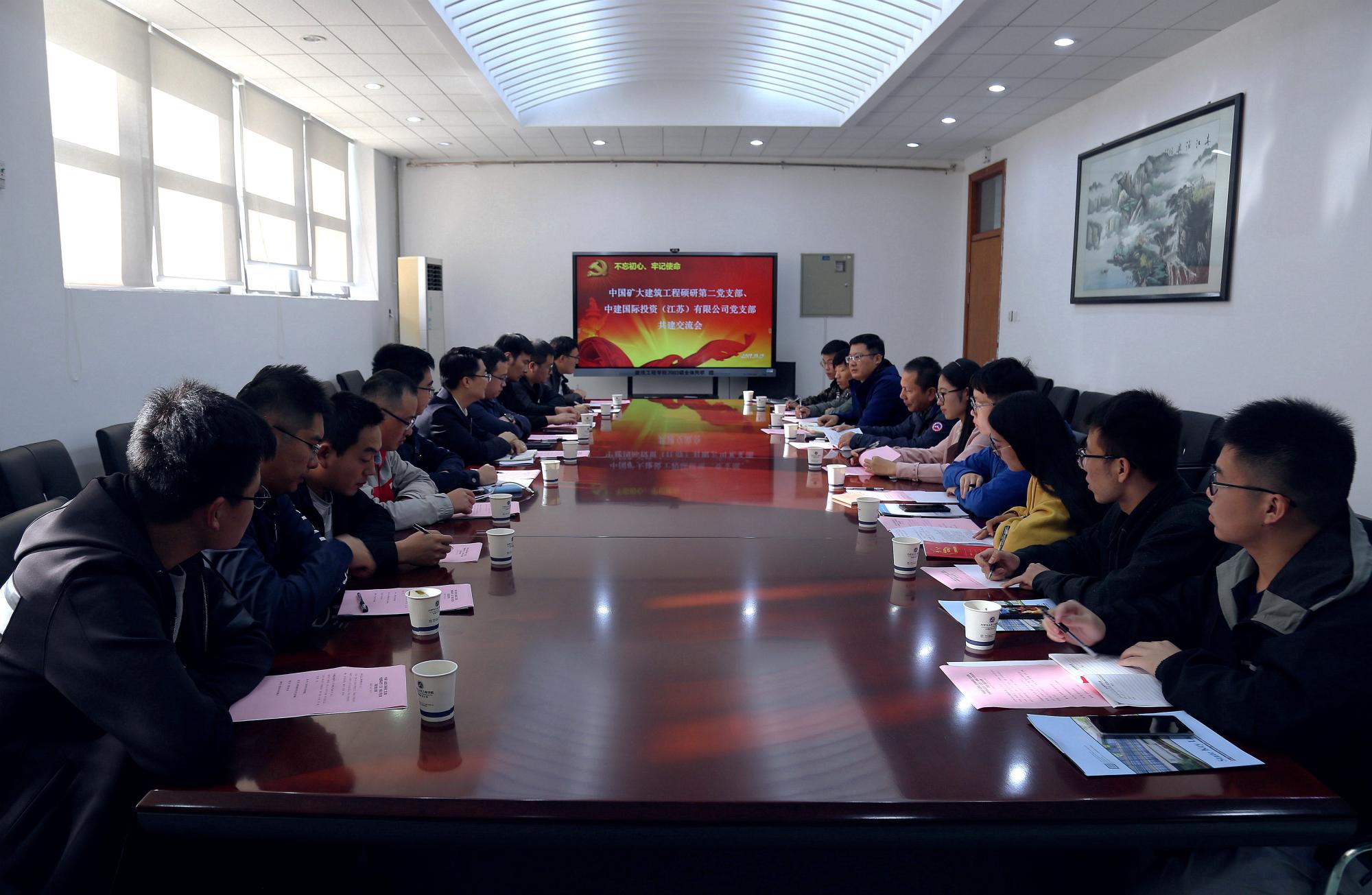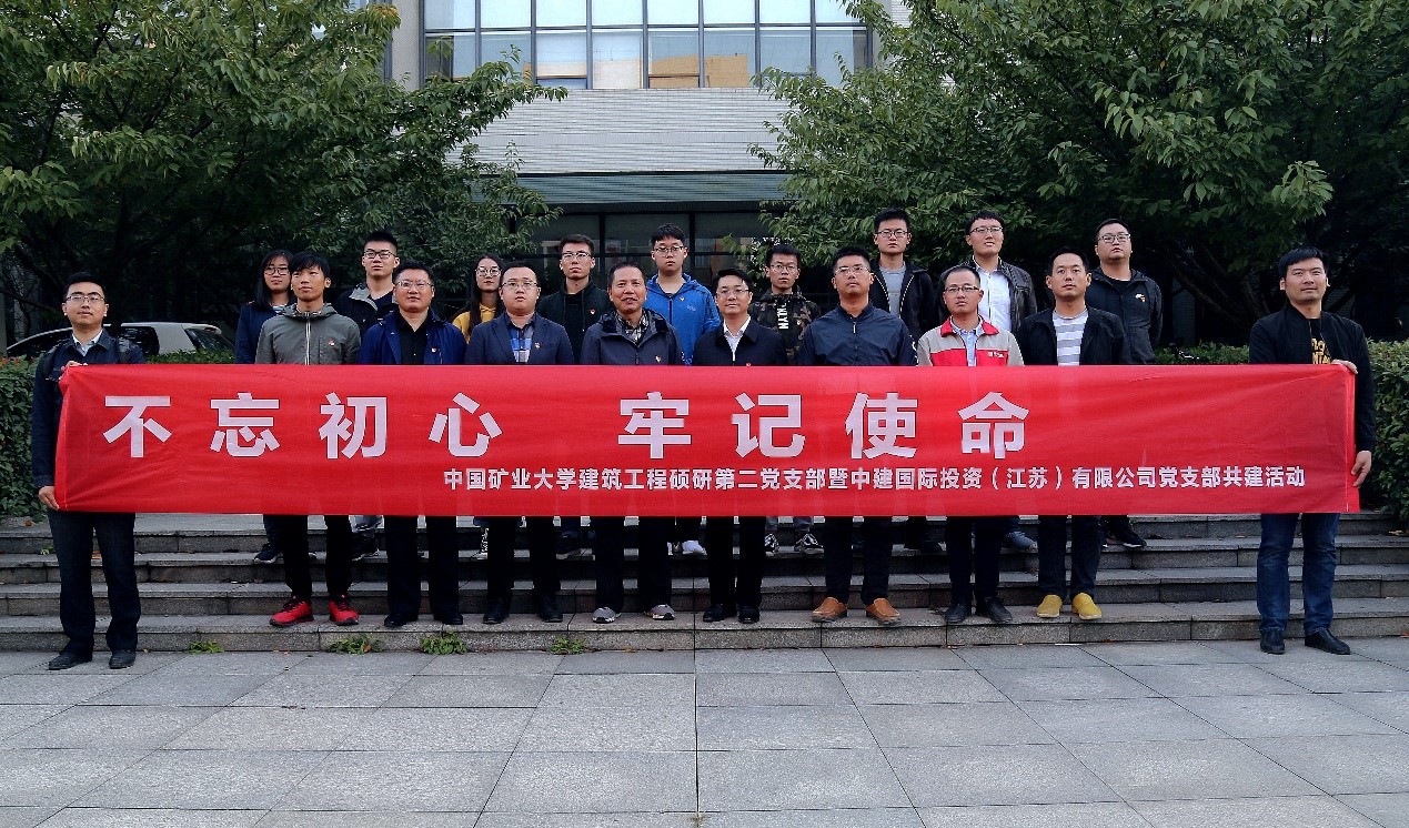 为了深入开展“不忘初心、牢记使命”主题教育,加强校企之间的文化交流以及党支部之间的联系共建,10月15日下午,公司党委组织建筑工程硕研第二党支部同中建国际投资(江苏)有限公司党支部在矿大南湖校区开展共建交流活动。