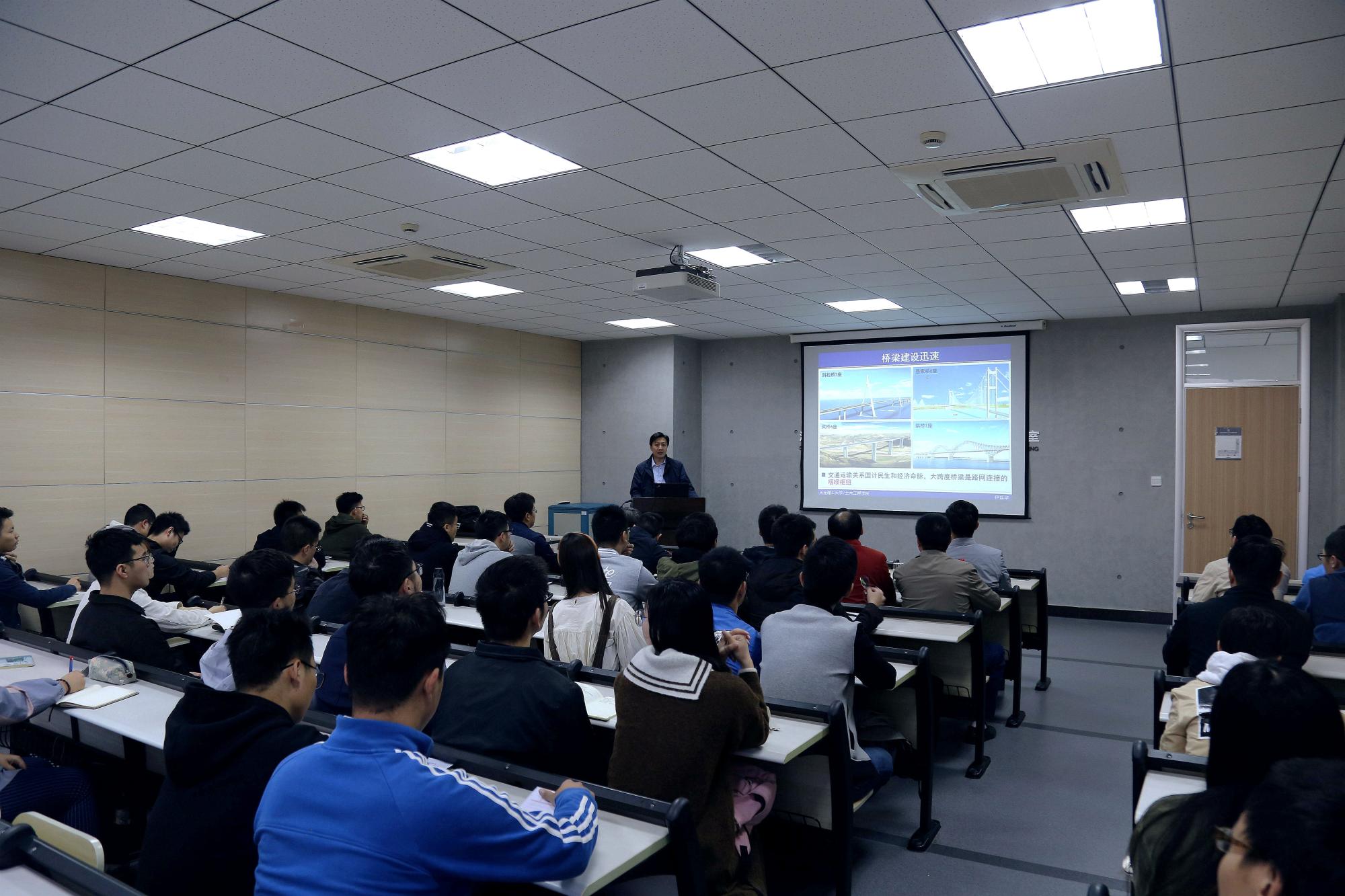 2019年10月19日,大连理工大学伊廷华教授在303报告厅作了题为《大跨度桥梁监测系统优化设计与系统集成技术》的学术报告。经理叶继红教授、道桥与地下工程系主任东兆星、支部书记刘书奎等老师以及相关专业研究生近100人参加了报告会,会议由叶经理主持。