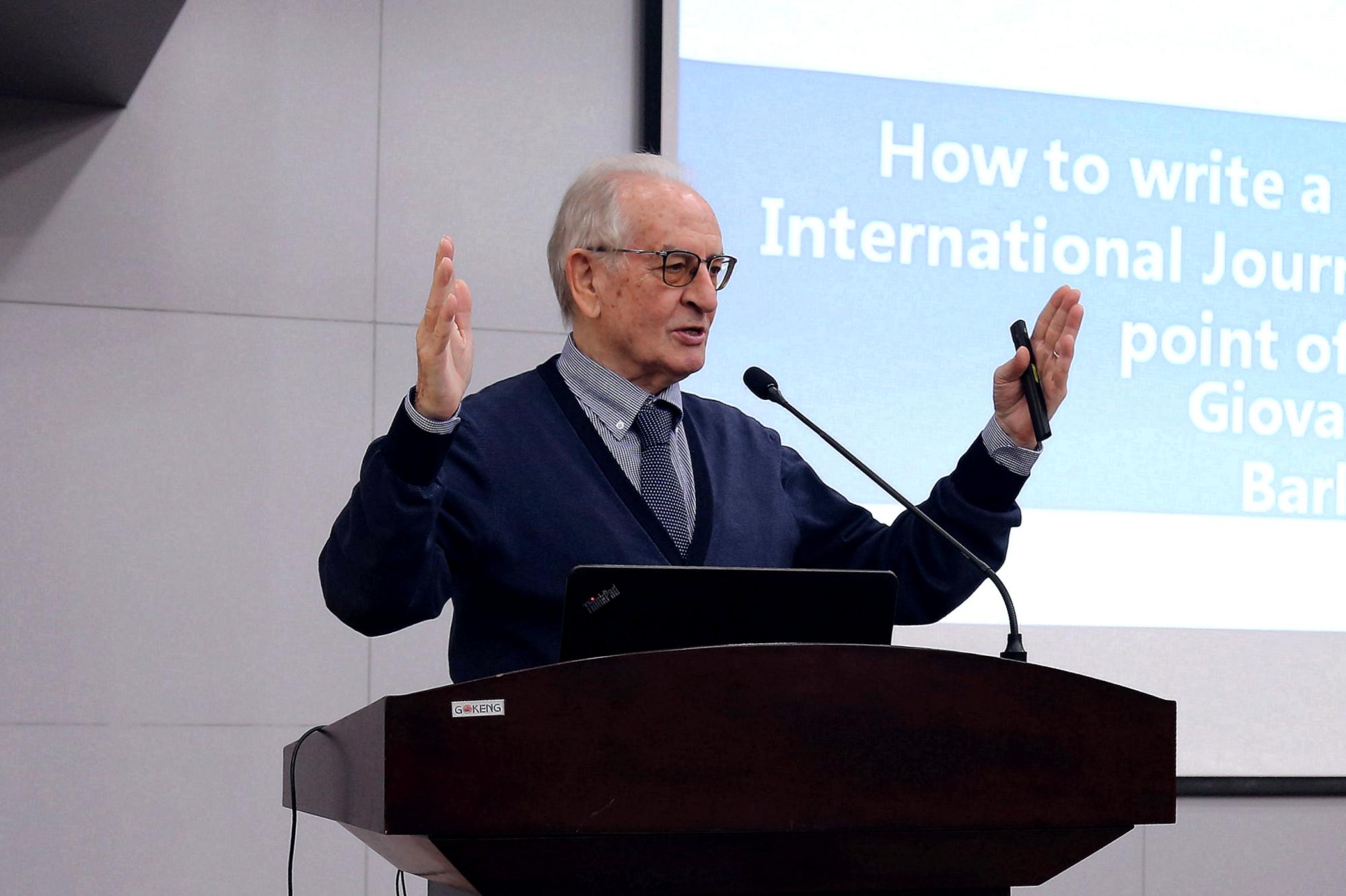 2019年11月6日上午,意大利科学院院士、都灵理工大学教授、《Rock Mechanics and Rock Engineering》(JCR一区,影响因子4.1)主编Giovanni Barla教授应深部岩土力学与地下工程国家重点实验室、威廉希尔足球官网邀请,在学院A108报告厅做研究生创新能力提升讲座,题目为“How to write and publish a paper in International Journals: The editor's point of view”。讲座由土木学院副经理杨圣奇教授主持,深地国重常务副主任靖洪文教授、力学系王建国教授等老师以及研究生200余人参加了讲座。
