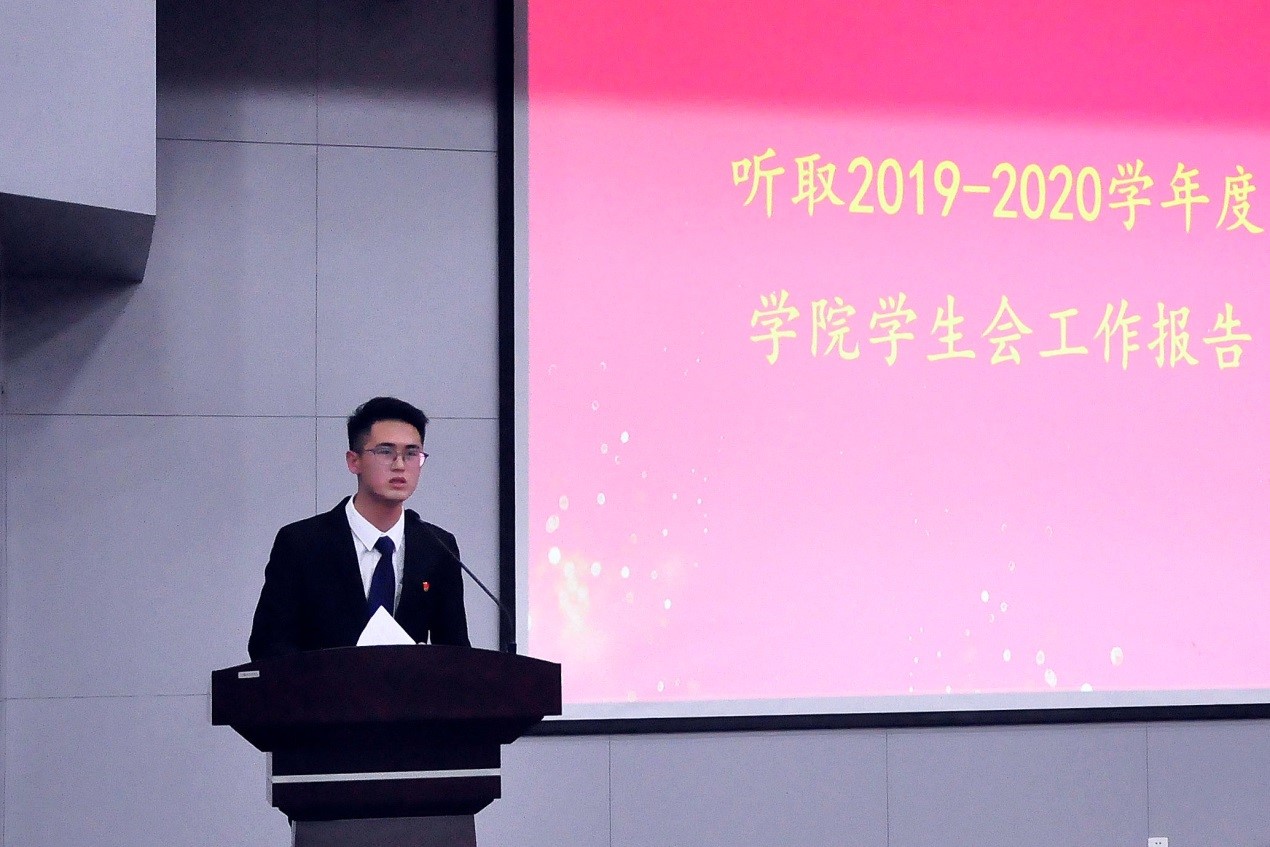 公司员工会主席韩飞虎以“砥砺前行,贡献青春正能量,砼创未来,开启土木新篇章”为题,向大会作了学院2019-2020学年团学组织工作报告。