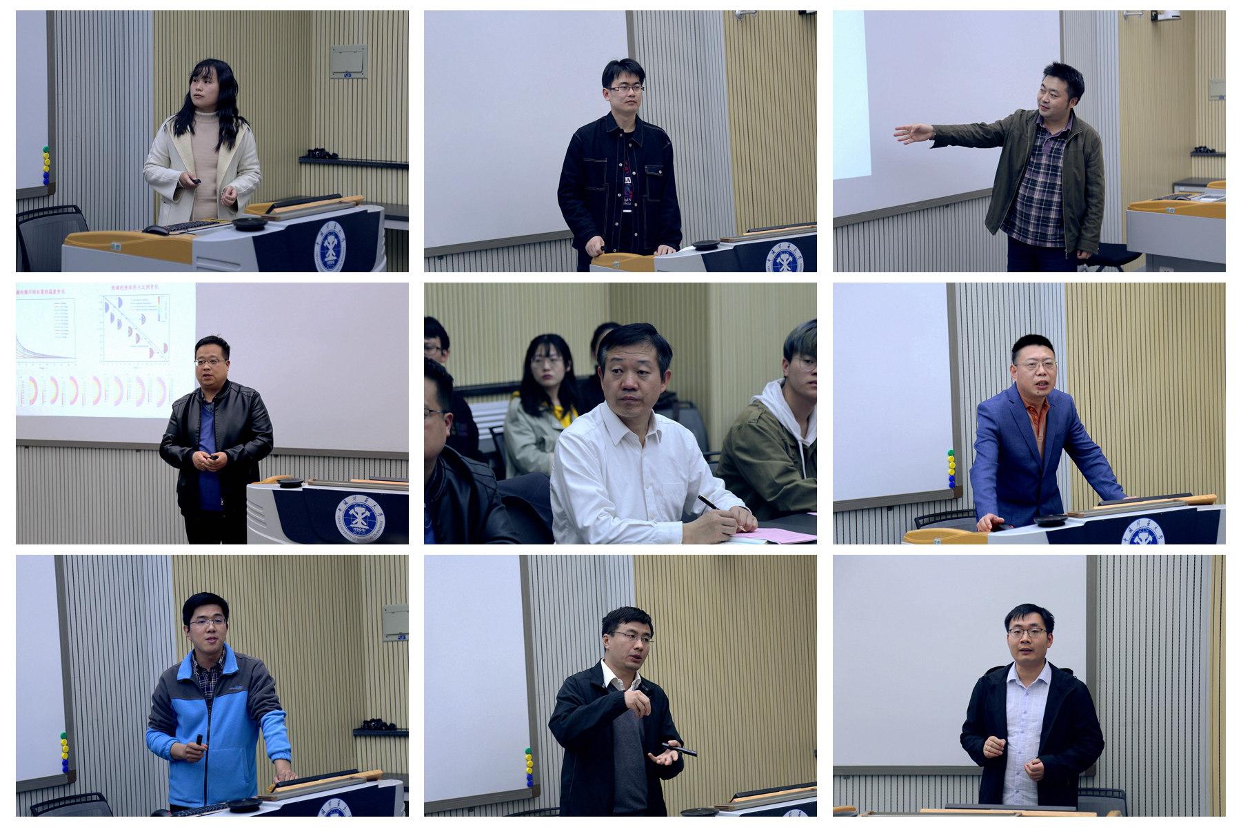 8位教师分别做了报告:陈婷婷老师“溶液调湿前沿研究及其强化技术”、凌云志老师“基于热管与相变材料耦合用于数据中心热管理的研究”、周扬副教授“考虑未冻水及变荷载冻土一维融化固结模型及解答”、刘展副教授“流体晃动动力数值模型构建与特性研究”、王义江副教授“干热岩激光高效热裂机理及特性研究”、黄建恩副教授“建筑围护结构内部水分冻结温度研究”、高蓬辉教授“超声波作用下液滴冻结状态及传热规律的研究”、刘元亮老师“开放空间液氢泄漏扩散行为特征研究”。汇报内容涉及国家科技重大需求、国家重大工程、重大灾害防控、民生工程、强本拓新等领域,有热点、有重点、有难点、有高度。参会人员就相关学术问题进行了热烈的交流与讨论。