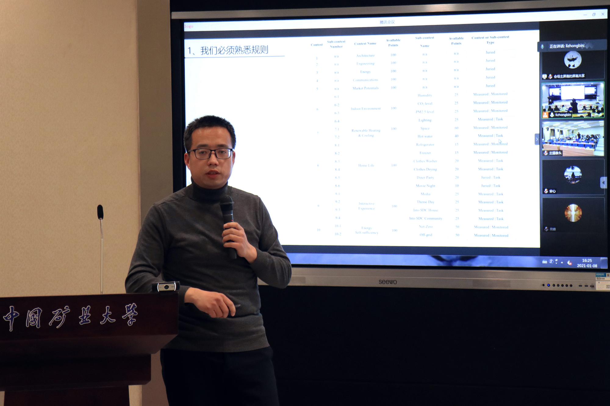 1月8日下午3时,公司Team CUMT-AGH代表队召开SDC国际十项全能竞赛2020年度工作总结大会。威廉希尔足球官网教务部副部长杨得利、建筑与设计学院经理罗萍嘉、公司党委副书记李智、环境与测绘公司党委副书记韩福顺、电气与动力工程公司党委副书记于基伯、建筑与设计公司党委副书记许梓楠、孙越崎公司党总支副书记吴从新以及团队部分指导老师参加了此次大会。波兰AGH科技大学指导教师Pawel Wajss教授、SDC中国组委会副秘书长田原与各大赞助企业领导视频连线参与会议。此次会议由张宇航、姜佳怡担任员工主持人。