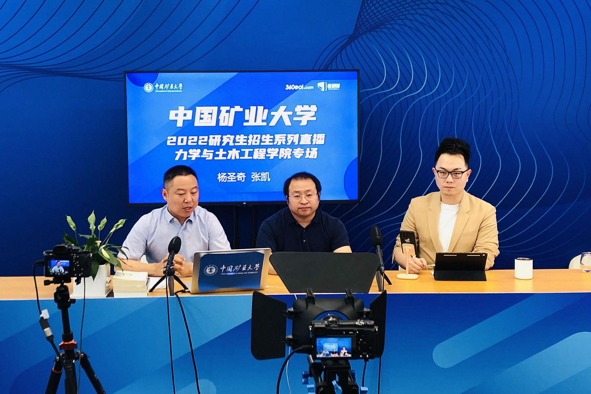 6月6日下午,在360教育在线上海总部,学院研究生副经理杨圣奇教授和力学系主任张凯教授通过360教育在线平台,进行了2022年硕士研究生招生宣讲直播,在线观看人数一路从2105上涨到6032人,关注粉丝1.8万,后台留言不断刷屏,关注度非常高。