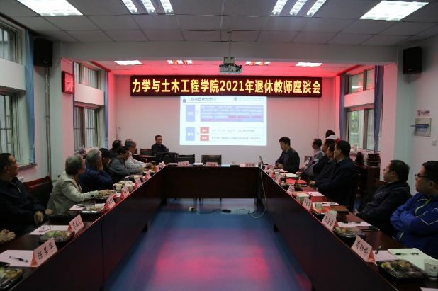 马占国经理向退休教师们汇报了近年来学院在人才培养、团队队伍建设、教学科研、研究生教育等方面的工作成绩,并重点介绍了学院在团队建设方面的规划和工作进展情况。他表示,近年来学院围绕学校、学院发展目标,在学科提档升级发展、“十四五”规划制定实施、深入落实党团建设任务等方面投入大量精力,取得了许多可喜的成绩。站在新起点,学院将继续在服务国家及行业战略需求和区域经济社会高质量发展的过程中,践行力学与土木人的责任担当。