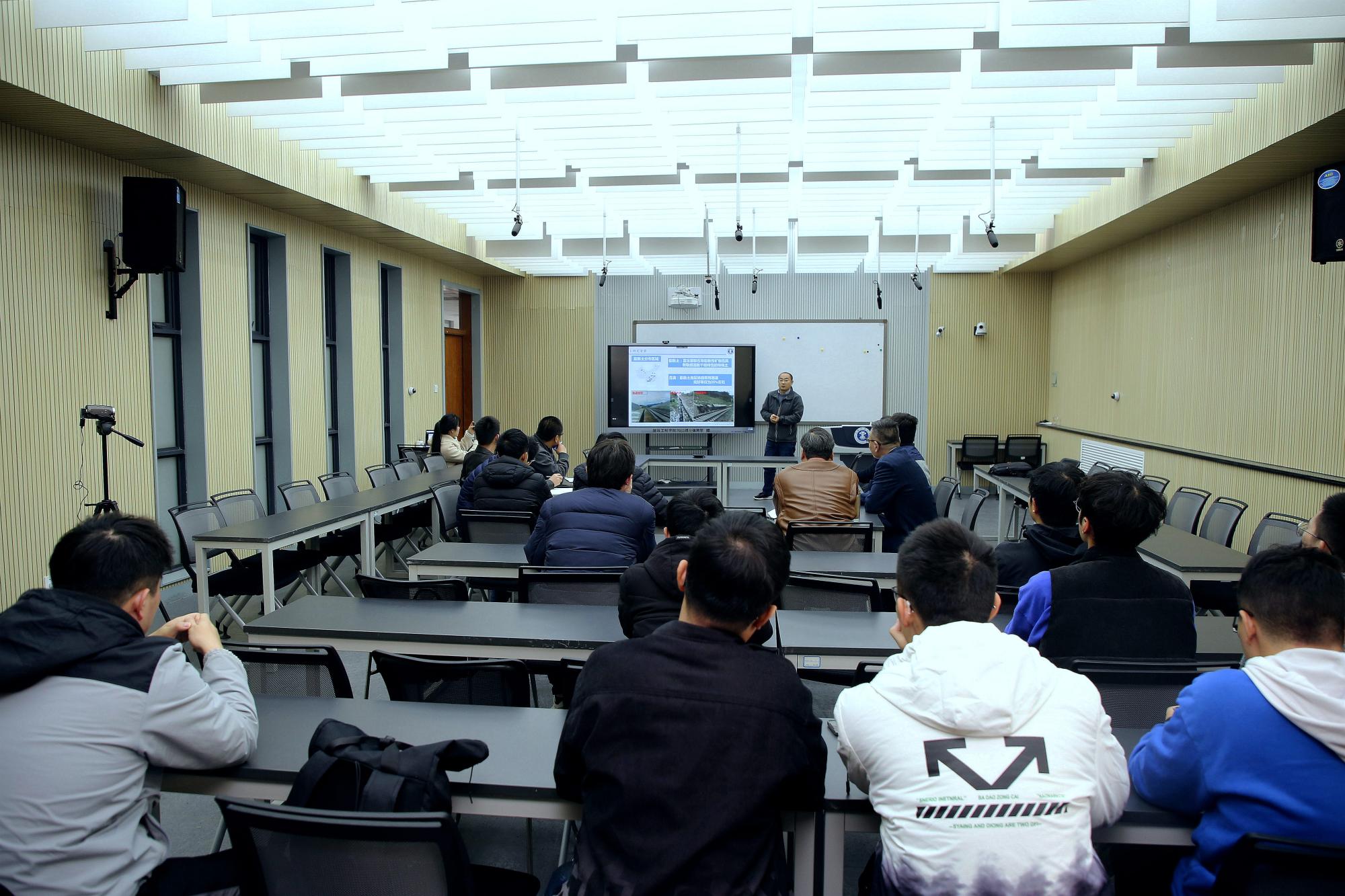 公司邵鹏教授、王亮亮老师、王其昂老师、周鹏副教授、杜涛老师及刘国强老师分别以动力扰动诱导岩体灾变效应的协同学机制、气候边缘地带膨胀土工程特性随冻融循环的演化规律、基于稀疏贝叶斯学习与实测结构健康监测数据的桥梁损伤识别、大跨度桥梁拉/吊索的减振方法研究、基于机器学习的非晶氧化铝断裂趋势预测、基于颗粒物质力学的沥青混合料骨架主力链成链准则研究为主题介绍了近期研究进展,围绕岩体灾变、膨胀土、桥梁损伤、拉吊索、非晶氧化铝等关键领域的学科问题进行深入交流探讨,并就在座师生的疑问进行细致解答。