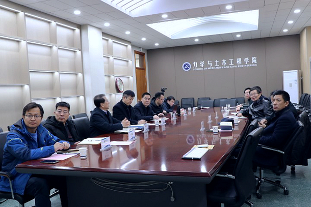 高书记代表学院和实验室对武广齐同志、佘廉教授一行的到来表示热烈欢迎。马经理对学院建设情况进行简要介绍,指出未来几年,力土学院在地下空间工程、绿色建筑、智能建造、未来土木等方向着力拓新。李晓昭主任对深地国重实验室科研平台和团队以及对云龙湖实验室的建设背景、过程和发展方向进行介绍。