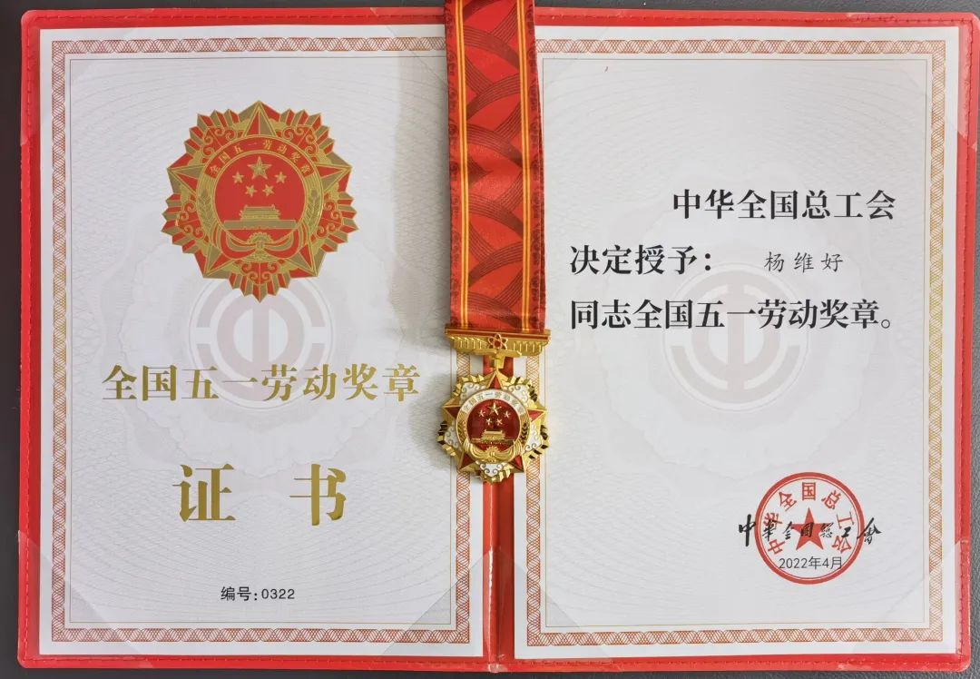 杨维好教授荣获2022年全国五一劳动奖章荣誉称号