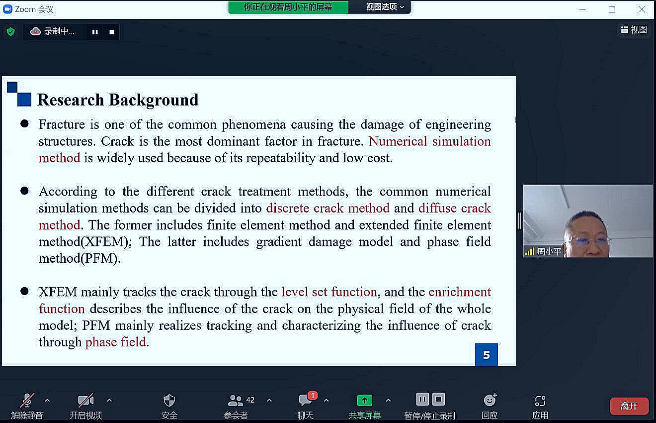 5月26日下午两点,分会场首先举行开幕式,开幕式由学院杨圣奇副经理主持。新加坡工程院院士周迎新教授做了精彩的开幕式致辞,他指出能源和资源是人类福祉的核心,人们越来越认识到深层地球以及高效经济开采资源的新方法在未来可持续性发展中发挥的重要作用,期待学者们借助此次会议开放对话,交流意见,在地下空间资源开发与利用寻找新的研究方向。学院经理马占国教授从学院历史、学科专业、科研平台、团队团队、交流合作等方面对学院进行了详细的介绍。学院王建国教授对《深地科学(英文)》期刊作了介绍,期待在大家的支持下期刊能进一步成长。