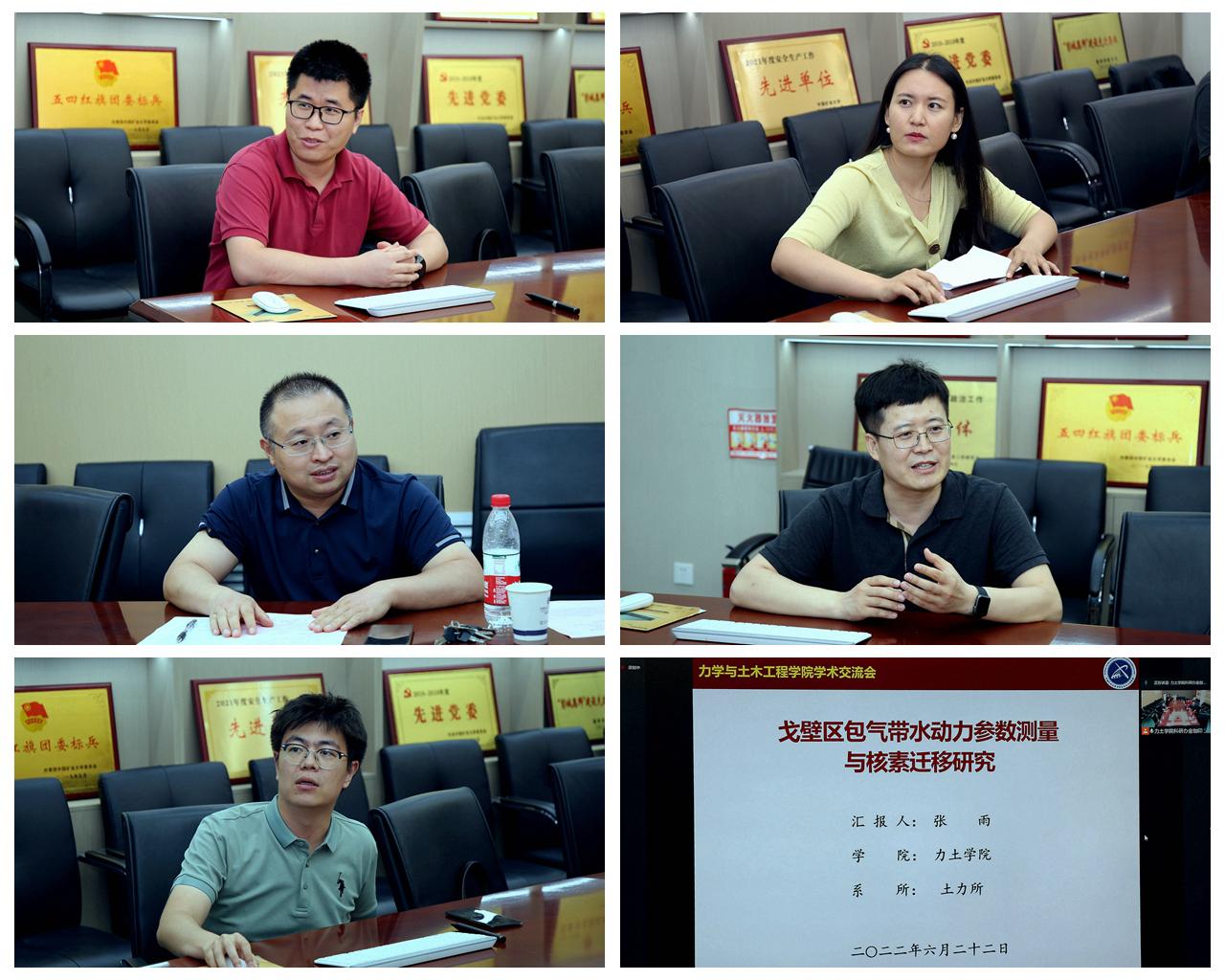 本次会议邀请学院和深部岩土力学与地下工程国家重点实验室的崔振东、沈洪垒、尚晓吉、刘耀徽、张雨老师分别做了《盾构隧道下穿施工对既有管线变形影响研究》《基于联合权重反褶积的多频数据融合方法研究》《UCG围岩温度场-裂隙场-气水渗流场联动演化规律》《戈壁区包气带水动力参数测量与核素迁移研究》《纳米材料浆液粗糙裂隙动水注浆研究》的学术交流。