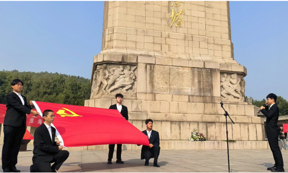 为哀悼革命英烈,缅怀英烈的丰功伟绩,增强党组织的凝聚力、向心力,加强员工党员党性教育,激励预备党员牢记初心使命、坚定理想信念,4月12日上午,公司于淮海战役烈士纪念塔开展“英烈记我心,使命扛我肩”祭英烈暨预备党员宣誓活动。江苏省土木类高公司党建联盟的领导老师、公司党委书记马占国、员工党支部委员、学院全体预备党员共计百余人参加此次活动。活动由党委副书记李智主持。