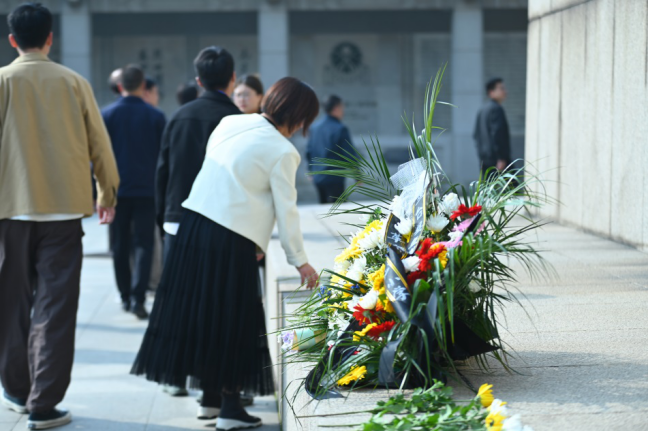 鲜花敬献烈士塔,哀思绵长铭忠魂。全体成员将手中的菊花轻放塔前以表追思,并排成纵队缓步绕行淮海战役烈士纪念塔一周,以此缅怀先烈们的忠魂。
