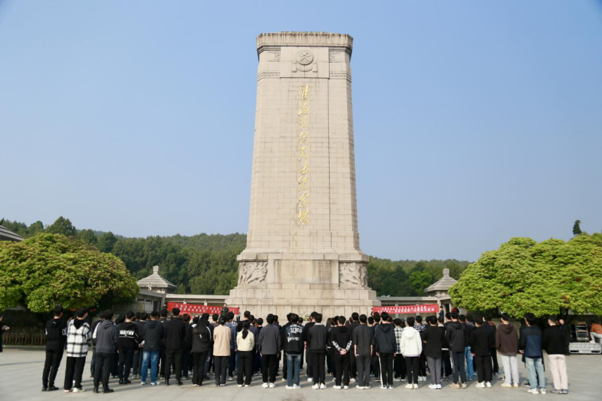 与会代表和学院员工预备党员赴淮海战役烈士纪念塔开展祭英烈活动