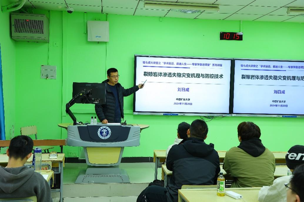 11月20日,“学术前沿,启迪人生——专家学者进课堂”系列讲座的第三讲开讲。公司刘日成研究员受邀作题为“裂隙岩体渗透失稳灾变机理与防控技术”的学科前沿讲座。